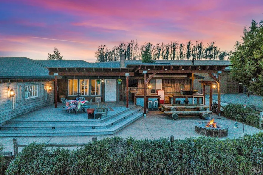 Discover the ultimate Petaluma haven, a welcoming 3 bedroom + den, 2 bathroom home nestled on over 2 acres, offering a unique blend of modern amenities and serene country living. As you enter through the front gate, you'll find every detail thoughtfully designed to enhance both comfort and functionality. Equestrian enthusiasts will appreciate the impressive 10-stall gable barn, while just outside the barn there's a single stall with a large turnout, six additional pipe paddocks, a well-equipped all-weather arena with lights and a viewing deck, and a round pen for training and exercise. The home itself exudes warmth, with an inviting open-concept layout, cozy wood stove, updated kitchen, and large windows that fill each room with incredible views. The primary suite is a true retreat with a spa-like bathroom, soaking tub, heated floors, two walk-in closets, and a private deck. Outside, an outdoor kitchen, bar area, and fire pit create the perfect space for entertaining, all set against breathtaking pastoral views. With an attached garage, two detached shops, a large hay barn, and a 2,500-gallon holding tank for the well, this property offers ample storage and practical amenities. Surrounded by 100-acre minimum parcels, you'll enjoy an unmatched level of privacy and tranquility.