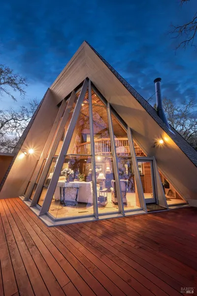 Nestled within 3.36+/- acres of scenic, oak-studded beauty, this dramatic contemporary masterpiece, designed by the famed Ken O'Connor. This is a rare find in the coveted Loch Haven community - perfectly positioned between Napa and Sonoma Counties. Designed to embrace its breathtaking surroundings. The residence features an expansive wall of glass that frames the double living areas with soaring ceilings and gives the space an abundance of natural light. The chef's kitchen overlooks the generous living rooms and formal dining area. Two guest bedrooms and versatile den/office create a seamless blend of comfort and sophistication. A upper level primary suite boasts its own indoor lofted deck that showcases the views. Step onto the sprawling decks for effortless indoor-outdoor entertaining, all while overlooking your vineyard of Chardonnay grapes! Multiple private alcoves adorn the house, including a hot tub level and solar. A true sanctuary of modern elegance and serenity. Moments from downtown Sonoma, Saint Helena, Calistoga and Healdsburg and all that they offer - world class dining and tasting rooms, artisanal coffee, boutique shopping, parks and much more. Do not miss this unique opportunity to live in a significantly designed residence and have it all, in the heart of it all!