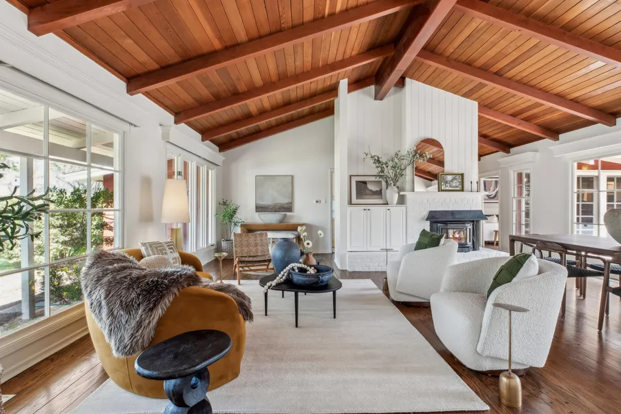 Situated on an extra large parcel of nearly 1/2 acre reaching from block to block, this is a rare find in a prime Eastside Sonoma location. Single level 3 bedroom/2 bath vintage home with detached barn with overflow space and bathroom upstairs. Interior features include wide plank hardwood floors, fireplace, open beam ceilings, and French doors leading to the park-like grounds. Indoor/outdoor living as you enjoy quiet times on the large brick patio under ancient shade trees. Room for expansion on this large parcel with public services. Charming detached garage accessed from the quiet lane behind.