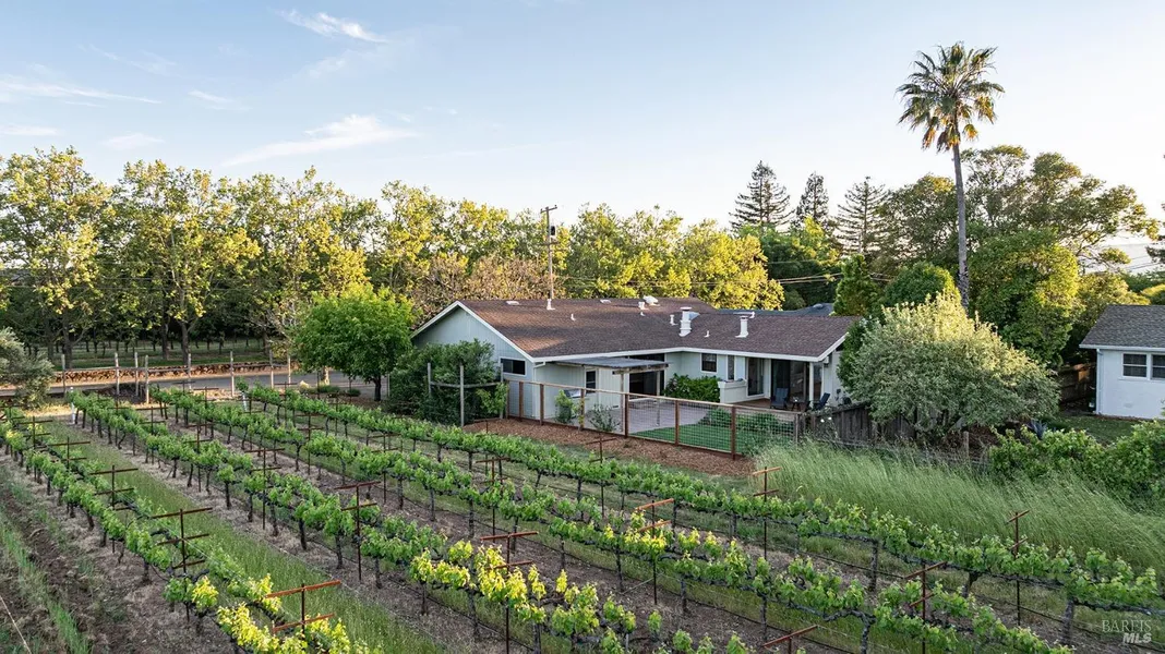 A rare opportunity to live in one of the most coveted Eastside areas with breathtaking vineyard views out your backyard. This mid century charmer sits adjacent to the prized Sebastiani Cherryblock Vineyards, steps to the Sebastiani Winery, a stone's throw to the scenic bike path and 4 blocks to the downtown Historic Sonoma plaza. This home offers an original footprint that includes three bedroom, two baths, plus a small office. The spacious primary bedroom, located in the back of the house, has vaulted ceilings, a fireplace and exterior access to the back deck complete with stunning views to the vineyards. The kitchen has updated cabinets, stainless refrigerator, a fireplace off the dining area and exterior access to the backyard. The backyard has a patio and a large deck for entertaining. The backyard is an ample sized lot with room to add raised garden beds or a dipping pool. Ideal for anyone who wants to make their own updated custom home or enjoy a second getaway in the wine country on the edge of town, where country meets city in Sonoma.