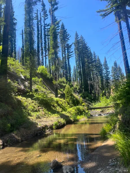 Relax into the peace and serenity of this enchanting rustic Healdsburg property. Your redwood empire is nestled less than 15 minutes from the well desired downtown Healdsburg in the heart of Sonoma County Wine Country. Hike and explore the many trails on your own private 9 acres. 1000 feet of the prestigious Mill Creek flows through this property, setting the stage for a private holistic retreat or campground, or build a sanctuary of a personal residence. Two natural springs run year round. Multiple plateaus allow for many garden locations. County maintained road, PG&E available. Zoned RRD- Resource,Rural Development.