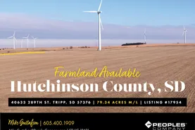 Peoples Company is pleased to present this highly productive tillable 79.34-acre m/l farmland, located southwest of Tripp, South Dakota in Hutchinson County. This property contains high-quality soils with a CPI of 76.6 and also contains a wind turbin