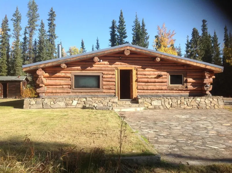 Remarkable log home close to town but set back from the road for ultimate privacy. With a circular drive & amazing stone work, this home features beautiful spruce logs, Knotty pine ceilings, cedar walls & double paned windows. Includes a large unfinished basement with a wood shop and grow room, in addition to a large laundry area & a 1500sf garage. Baseboard heat, wood stove, full kitchen & bath.
