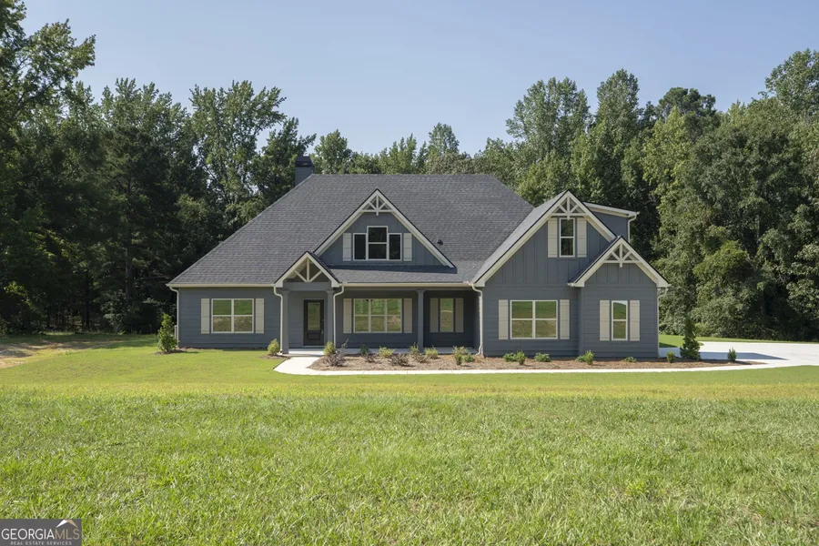 Location! Location! Location! Nestled on a beautiful 4.5 acre lot, this incredible home offers the perfect blend of privacy and convenience in a prime North Spalding County location. Just 27 miles from Atlanta International Airport, you'll enjoy the serenity of country living without sacrificing access to city amenities. With fiber internet available, this home is ideal for remote work or staying connected in today's fast-paced world. The Addison plan by Trademark Quality Homes is a highly sought-after plan, and it's easy to see why! This spacious, 4 bedroom, 3.5 bathroom home boasts a split bedroom design that provides the perfect layout for both comfort and privacy. Upon entering, you are greeted by a welcoming foyer and a powder room, perfect for guests. The spacious great room features a cozy stone surround, wood-burning fireplace and vaulted ceilings complete with gorgeous wood beams, creating a warm and inviting atmosphere. The gourmet kitchen is a chef's dream, offering an open concept layout with a sunny breakfast area, formal dining room, and luxurious designer finishes throughout. Carrara Morro quartz countertops, a tiled backsplash, stainless steel appliances including a wall oven, separate cooktop, dishwasher, built-in microwave & vent hood, and sleek modern glass pendants complete this space. Whether you're preparing an every day meal or hosting guests, this kitchen will impress and flows conveniently through to the formal dining room. The spacious primary suite on the main level is a true retreat, featuring a tray ceiling and a private bath with double vanity, carrara morro quartz countertop, a huge walk-in closet, a separate free-standing tub, and a tiled shower. Two additional guest bedrooms, a full guest bath, and a laundry room are also conveniently located on the main level. Upstairs, you'll find a large bonus room, a perfect space for a home office or media room, along with another guest bedroom and a full bath-ideal for privacy and comfort. Relax and enjoy the tranquility of your surroundings from the rocking chair front porch or covered back patio. With over 4.5 acres of wooded beauty, there's plenty of room to explore, entertain, or simply unwind. Don't miss the smart home features: keyless deadbolt, select smart switches, video doorbell & more. Builder requires a 2% construction deposit and offers a $2,500 credit with use of a preferred lender - plus an additional $2,500 from the lender! Don't miss your chance to own this exceptional home in one of the most desirable locations in North Spalding County. Contact the listing agent today for more details!