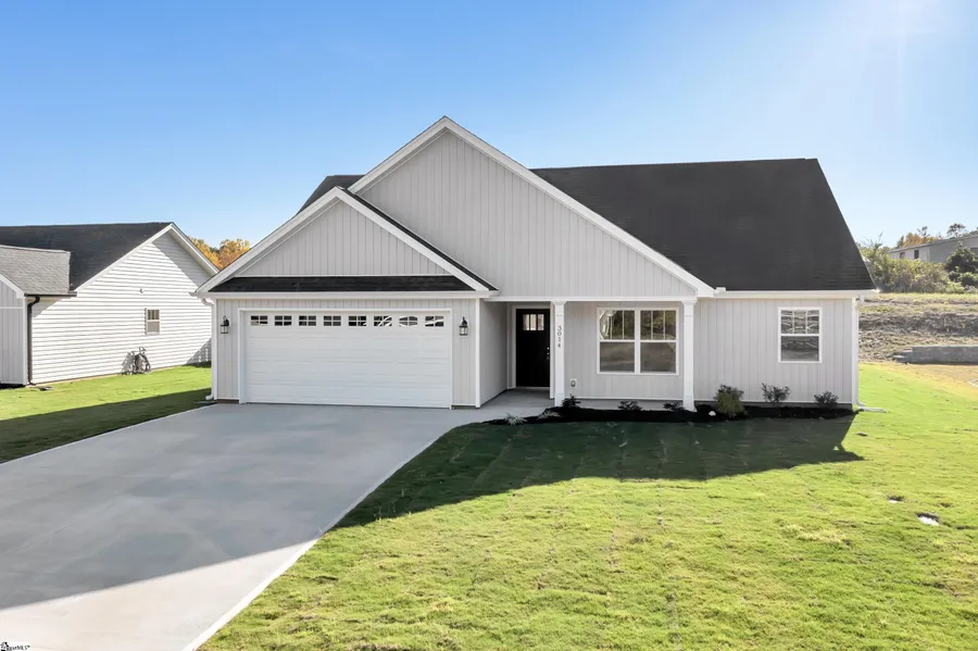 Located just minutes from Downtown Inman, you will find this charming new construction ranch. This home offers LVP flooring through out, with a split floorplan, leaving all of the main areas open. Once you enter through the wide foyer you are greeted by a gas fireplace, beautiful vaulted living room ceiling, and an eat-in kitchen with breakfast nook. This kitchen houses an eat-at bar, stainless steel appliances, granite countertops, and white cabinets with a walk-in pantry. The owners suite offers a large walk-in closet with multiple shelves, trey ceiling, and a bath with double vanities plus a benched shower. Enjoy your covered porch on both the front and back, plus over a quarter acre lot with a step up oasis! Don't let this one get away!