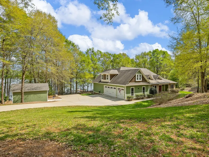 This lake front home is sitting in one of the most desirable spots on Lake Blalock, with 258' of lake frontage and privacy on a partially wooded cul-de-sac peninsula. The home has lovely water views from the living room, kitchen, breakfast room, master bedroom, and 2nd bedroom. This Craftsman style home is appointed with upgrades such as granite counter tops, stainless appliances, custom built soft-close hickory cabinets, under cabinet lighting, a large island, separate cooking area with filtered exhaust, and 9' ceilings. There is beautiful tile in the kitchen and the bathrooms. The Brazilian Teak, Cumaru, and Hickory hardwood floors are in many of the main living areas. The master suite features a double trey ceiling, double vanity, large tiled walk-in shower with double shower heads, with custom tile, and a large walk-in closet. A staircase leads to an unfinished walk-up attic space with 760 square feet on the 2nd level that could be finished to add a bedroom and bonus room. The crawlspace has a vapor barrier and dehumidifier. There are gutter guards on the gutters. The screened porch has relaxing views of the lake and leads to a large trex deck. Off the deck you will see the beautiful green grass and a trex walkway that leads to the dock with a boat lift, a kayak rack and the refreshing waters of Lake Blalock. The custom built 10x16 out building is bolted to a thick concrete slab and is great storage. The Refrigerator, Washer & Dyer will remain.