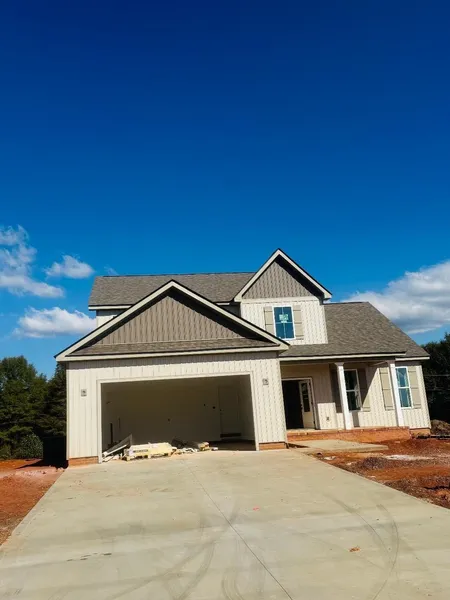 Spec Home - 2 story with open foyer, 3 bedroom/2.5 bath, 2423 heated space, hardwood floors in main living area, carpet in bedrooms, ceramic tile floors in baths and laundry, bump out with windows in dining area, quartz countertops, kitchen island, fireplace, ceiling fans in living room, primary bedroom and on covered rear porch, NOTE: Plan/Upgrades on attached floor plan may change at builder discretion