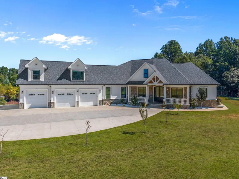 WELCOME to 230 GANO DR, a STUNNING custom home built with the finest MASONRY STUCCO and NATURAL STONE on just over 3 acres, perfectly located in the Reidville area, right BETWEEN Greenville and Spartanburg. FOUR bedrooms including the MASTER SUITE are on the MAIN LEVEL, and upstairs you’ll find a a FIFTH BEDROOM which could serve as the perfect guest quarters. The LARGE COVERED FRONT PORCH is striking, with handmade concrete balusters and a slate floor. Step inside to SOARING CEILINGS and an open design where the kitchen shines as the heart of the home, featuring a huge QUARTZ island, seemingly infinite counter space, and room for both cooking and gathering. EVERY POWDER ROOM HAS HEATED FLOORS and porcelain tile showers, while the MASTER SUITE feels like a spa complete with a romantic bedside fireplace, soaking tub and an extra-large DOUBLE SHOWER. Downstairs, the 3900 sf unfinished WALKOUT BASEMENT is ALREADY PLUMBED and framed, ready for you to design your dream space. Out back, a covered porch opens to a COURTYARD that could easily become the perfect poolside retreat. The lower yard is planted with ABUNDANT fig, persimmon, and pear trees, along with raised garden beds and a wooded trail where you can enjoy morning walks or search out wildlife. An outbuilding at the trailhead has electricity and stores all of your yard equipment. Just steps away is TYGER RIVER PARK, offering walking trails, a dog park, disc frisbee, and open green space. Offered at $1,900,388 – 230 Gano Drive combines elegance, comfort, privacy and "No HOA" freedom in this truly special setting. All in an exclusive, PRIME LOCATION.