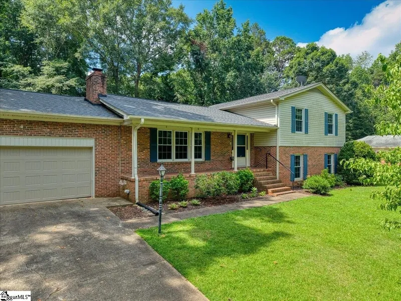 Nestled on approximately 0.5 acres in the desirable Country Club Estates subdivision of Greer, this charming home offers a peaceful retreat surrounded by mature trees and a lush, private yard. Whether you're enjoying the welcoming front porch or relaxing in the spacious sunroom (added in 2015), this property is made for comfort and connection with nature. Inside, you'll find a thoughtfully designed layout beginning with a slate tile foyer that flows into beautiful hardwood floors. The guest bedrooms are carpeted for comfort, and the lower-level recreation room features durable LVP flooring, installed in 2019. The spacious living room centers around a cozy gas log fireplace with built-in bookshelves, creating a warm and inviting atmosphere. The kitchen includes a dining area, which opens directly into the sunroom—ideal for everyday living and entertaining. Upstairs, the home features three generously sized bedrooms, including a primary suite with a private bath, and an additional full bathroom serving the secondary bedrooms. Downstairs, the finished basement offers even more flexibility. It includes a large recreation room, a home office with a wet bar (which could easily be converted to a fourth bedroom), another full bathroom, and a walk-in closet—perfect for guests, a home office, or multi-generational living. Additionally, you'll love this home has tilt out double hung windows for easy cleaning/maintenance.