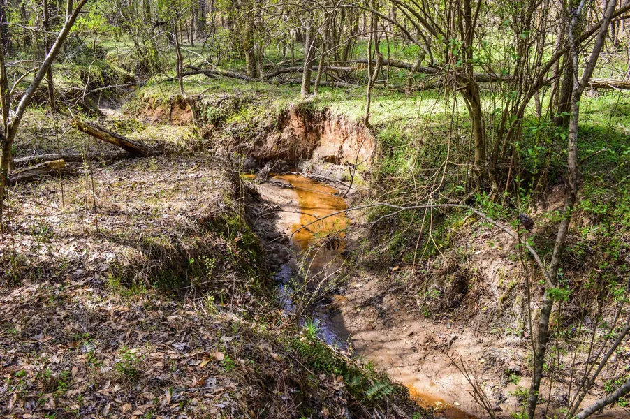 Tract 2 is a most unique property with plenty of potential for under $3,000 per acre. 2 Mile Creek runs the entire back line and there is over 2500 ft of paved road frontage along Mt.Shoals rd. Lots of flood plain, but enough high ground for a homesite. Plenty of hardwood trees and an abundance of wildlife along the creek. A pipe line r/w crosses the property and it is planted in grass. Public water is available.