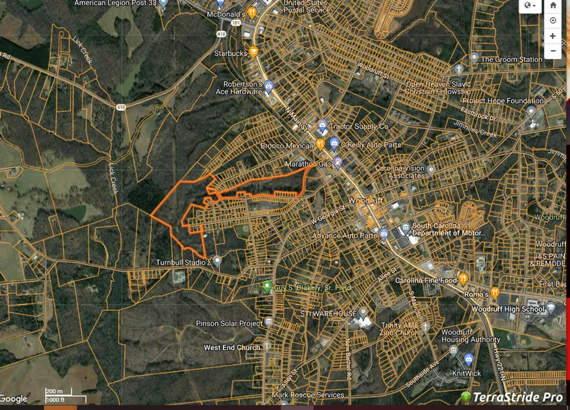 The Woodruff Tract is a property in the City Limits of Woodruff, South Carolina that has potential for development of private home sites. The property is bordering existing neighborhood. Woodruff is a small community in the upstate that is beginning to develop as a suburb to the Greenville - Spartanburg area with a growing industry segment and residential population. The advantages of the Woodruff area is that it is located in a more rural small town setting that is starting to grow, but still has the small town feel.