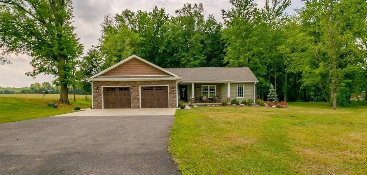 Beautiful custom built home on a 1.92 acre lot. Home offers 3 bedrooms, 2 full baths, living room, eat in kitchen and large family room. There are 2 indoor fireplaces and 1 outdoor fireplace. The oversized 2.5 car attached garage has a summer kitchen and also there is an upgraded detached 32 x 24 insulated garage with ceilings, electric service, water, 10 x 10 garage doors, work bench and floor drain. The rear family room has tons of windows that overlook a private patio with a gorgeous stone fireplace. Property has been professional landscaped. This home offers many upgrades such custom cabinetry throughout, steel gutter guards, double hung tilt windows, spray foam insulation, belt driven gdo's with battery back up and app to open from your phone plus a new paved driveway. Seller will be installing a nice wood fence or live fence on west property line.