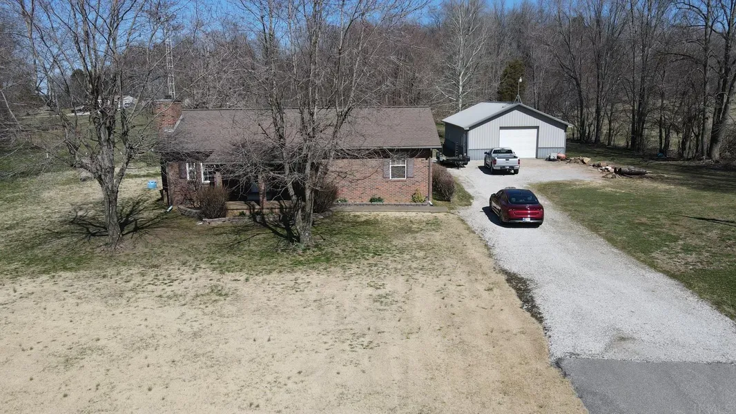 This cute well maintained 2 bedroom 1.5 bath is situated on almost 3 acres!! The home features a nice size living room with an extraordinary stone fireplace. Off of the living room is the open kitchen with an abundance of hickory natural wood cabinet space. The two bedrooms both have nice sized closets. This property also has a 30x50 barn with 10 ft ceilings, a wood burner, and dusk to dawn lights. An additional 14x16 small barn with electricity. The backyard overlooks wooded area, sit on the 10x21 back deck and enjoy! 32 in crawl space and Infiltrator septic with 4 85 ft lateral tanks. This is a must see!