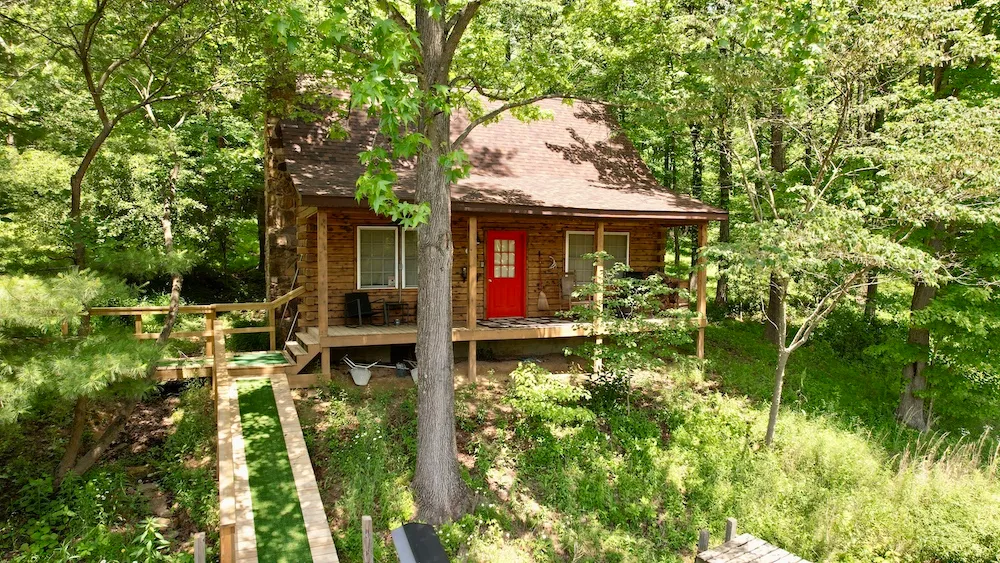 Escape to tranquility in this charming 900 sq ft cedar cabin, nestled amidst nature yet equipped with modern conveniences. This 2 bedroom, 1 bathroom retreat features a stunning river rock stone fireplace, creating a cozy ambiance perfect for relaxing evenings. The property boasts 1500' of graveled county road frontage, providing easy access and added privacy. Modern amenities include electrical and fiber internet services, ensuring you stay connected while enjoying your getaway. The cabin is equipped with a 1000-gallon cistern and a private septic system. Outdoor enthusiasts will love the approximately 1 mile of established trails and shared roads, ideal for hiking, biking, or leisurely strolls. For fishing enthusiasts, the property features a private 2.5+ acre pond stocked with trophy largemouth bass and hybrid bluegill, offering the ultimate fishing experience. The cabin comes fully f...