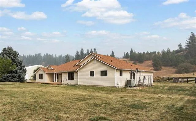 Amazing home with 3068 sqft of main floor living just 25 min from town!! This wonderful property has almost 360 degree views from the top of the property and offers 5 bedrooms & 4 baths with two beautiful master suites!! Large kitchen, kitchen island and formal dining that opens to the great room w/vaulted ceilings, butlers pantry & large walk-in pantry with separate utility room w/storage. This 63 acre farm has a year round stream and is ready for horses and livestock with a 60x72 horse/hay shop/barn which includes pastures and corrals.