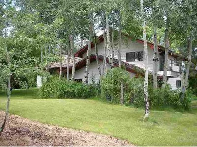 Outdoorsmans sanctuary - stream, pond, fir, tamarack, pine, aspens, subirrigiated meadow! 22 acres of interesting and usable land. Eclectic house, rough beams, exposed brick, rock. Birch plank floors - lots of big windows - several outbuildings - 1500SF studio/shop insulated. Barns, animal enclosures. 15 min to downtown, 10 min to shopping - quiet, private-interesting lovely landscaping.