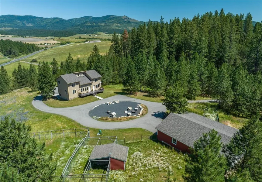 Custom built home on over 10 acres with AMAZING views. This 5 bedroom, 3.5 bath home feature passive solar construction with soaring ceilings and great room concept. Distinct, unique wine cellar. HUGE 3 car garage and a 3 stall barn with chicken coop allow for multiple storage options. Huge garden, RV Hookups. Freeman school district. If you are a gentleman farmer or just require "toy" storage this could be for you. Minutes from Coeur d'Alene or Spokane.