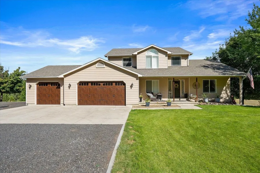 Custom 3,747 square foot home on 5 acres in Buckeye Valley Estates w/ daylight, walkout basement. 4 bedrooms, 4 bathrooms, an office, spacious kitchen that walks out to entertainer's deck, 3 car garage, 30X40 shop w attached dog run/kennel, large patio w hot tub, & one of the most enjoyable layouts to 5 acres. Half the property is treed w trails giving off an enchanted forest vibe, & the other half has a spacious lawn w full sprinkler system... all of which offer beautiful sunrise views of Mt. Spokane. Main floor includes large formal living room, nice sized laundry room w cabinets, two dining spaces (formal & informal) & an updated kitchen w granite counters, custom cabinets, stainless steel appliances & two ovens. Upstairs has 3 bedrooms & 2 bathrooms, including the primary bedroom w en suite bath & California closets. The basement has two additional informal living spaces & a potentia...