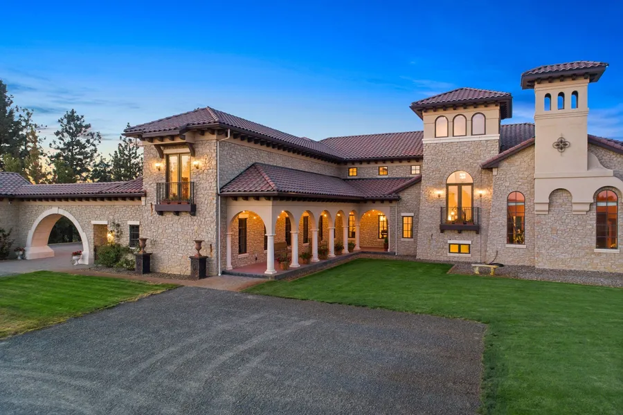 Inspired by the natural elements of the Tuscan countryside, this magnificent home combines old world design with today's modern conveniences to create this architectural gem. Meticulously crafted with imported materials and finishes of the highest quality, this 7,496 SF masterpiece features 5 bedrooms, 6 bathrooms, a 2 story ''salotto'' living room, gourmet chef's kitchen, dining and settee areas, pantry, library, theatre room, fully equipped guest apartment, game room, and a fitness area large enough to dance the ''Tarantella'' and practice pickleball! This incredible 15.6 acre estate offers multiple outdoor living spaces, Italian water fountains, grass bocce ball court, vegetable & flower gardens, fruit tree orchard, motor court with 3 garages and a large shop. Nothing Compares to Casa del Leone (house of the lion)!