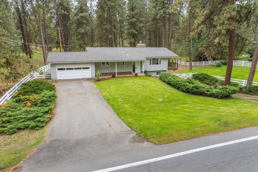 Beautifully maintained and updated Spokane Valley Home located in Ponderosa. This 5 bedroom, 3 bath home has been owned by the same family for almost 50 years. The two tranquil acres feature a barn with plenty of room for storage and large animals are allowed. The home has been recently updated with new interior and exterior paint, deck, flooring, and fixtures. Updated kitchen offers a fireplace and stainless appliances. Main floor primary on-suite with glistening hardwood floors.