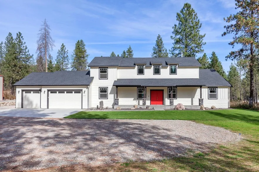 This property offers multi-generational living and versatility galore. Quality abound as you step in this modern home with 5 bedrooms, options for office, workout room, split main floor plan, granite countertops throughout, primary bedroom is oversized and private with attached 3/4 bath, walk in closet and separate laundry. Open great room with beautiful kitchen, lots of natural light, pantry, kitchen island, pet wash area and private pet fenced area. 3 more bedrooms, full bath and additional laundry finishes out the main floor. Upstairs you will find additional bedroom and bath (could be additional primary) and a bonus room. Attached 3 car garage gives ample room for your cars, 16 x 30 back deck plus a 40 x 50 shop with a bathroom and laundry and a 500 sq ft 1 bed, 1 bath full apartment. RV area with power and cleanout, sprinklered yard and storage shed. The property is on Whitworth water!!!