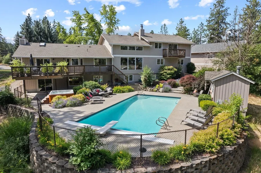 Discover the ultimate blend of luxury and tranquility in this 2.28-acre custom estate tucked away on a quiet cul-de-sac in Spokane’s sought-after Painted Hills neighborhood. With 5,696 sq ft of expertly designed space, Boasting 6BD, 4BR, & 3 expansive LRs, this home is made for entertaining or unwinding. Enjoy 4 cozy FPs, & 2 new AC units. The master suite is your personal retreat, complete with a private balcony, gas FP, walk-in closet, & spa-inspired BR. Dive into the heated 18x36 gunite pool, or relax in the Spa. The pool features a new gas heater, new pump, & new cover. It’s the perfect setup for unforgettable gatherings or starlit soaks. Your Dream Workshop Built in 2023 is 36'x50', has a 125amp panel, 18-ft ceilings, and a second-floor-ready design perfect for your RV, boat, toys, or project. Surrounded by professional landscaping & tucked away from the bustle, this home offers unmatched privacy & stunning curb appeal in every direction. Come see why it’s the perfect fit for your next chapter. New roofs