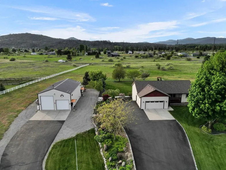 Stunning and meticulously maintained home! Rancher in beautiful Newman Lake with mountain views. 5 park like acres with finished heated 30'X55' Shop with 220 30 amp plug ins every 10 ft. 12X10 door and 12X 14 RV door. RV parking with 50 amp power hook up. New roof and windows in 2023. New Trane 95% AFUE with humidifier in 2022. 16X20 vinyl elevated deck with rail system and concrete lower deck with hot tub. Beautiful location with front and back views and beautiful 5 acres with vinyl and cyclone fencing. Come see this beautiful home today!