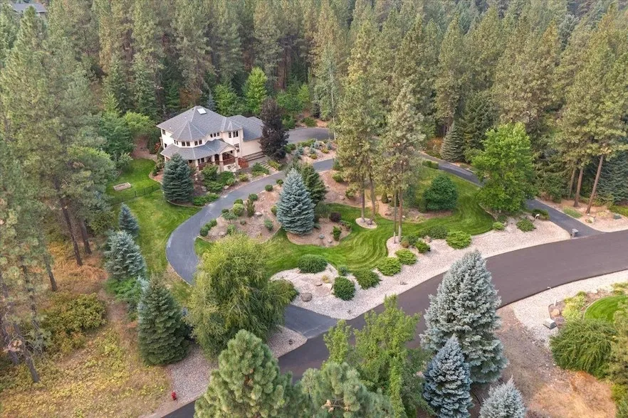 Discover this Spectacular Home Show Award Winner in the serene community of The Ridge at Hangman. Nestled on nearly 1.5 acres, this exquisite estate offers peace, privacy, and luxury. Step inside to rich hardwood floors flowing through the entry, kitchen, and breakfast nook. The elegant living and dining rooms feature cozy fireplaces, perfect for relaxing or entertaining. A spacious kitchen with a central island and eat-in space makes hosting effortless. The lower level includes a media room and workout area, ideal for fun and fitness. The luxurious primary suite boasts a spa-like bath with walk-in shower, soaking tub, and a large closet. Energy-efficient geothermal heating and cooling offer year-round comfort. Outdoors, enjoy beautifully landscaped grounds with water features, multiple patios, and treat it like your own private retreat. Also, the new roof was put on in August 2025.
