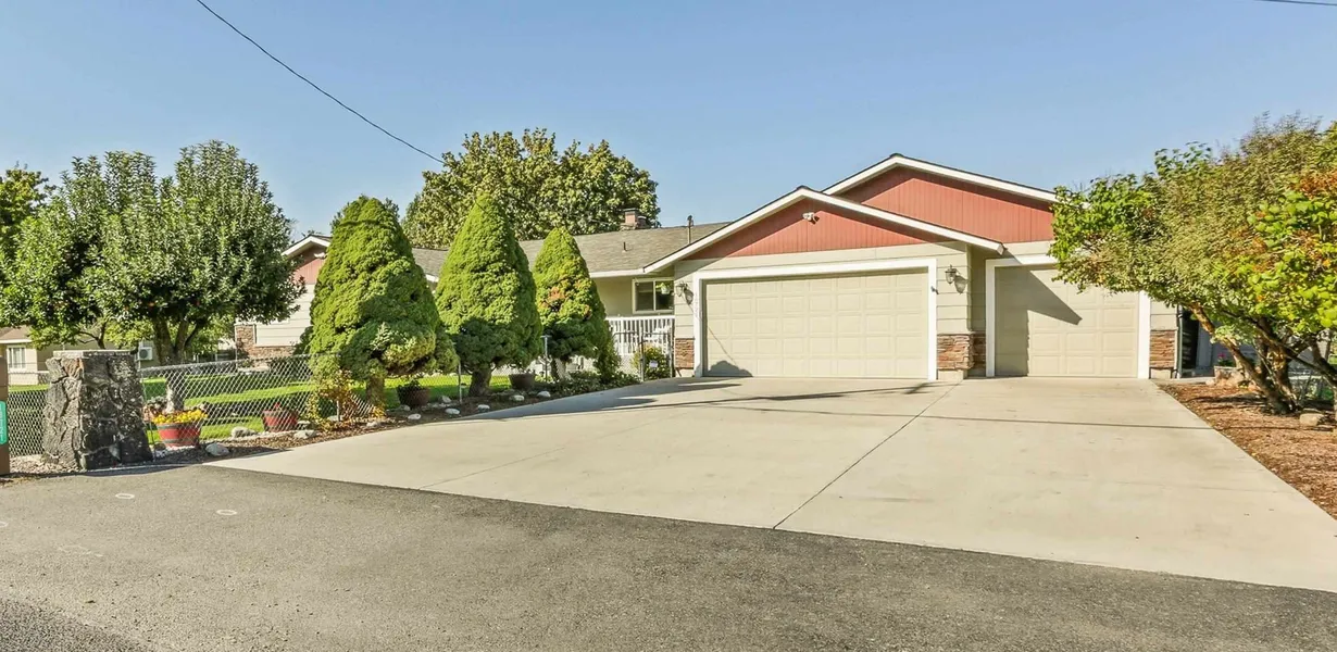 Spokane Valley .72 acre fully fenced remodeled apprx 3350 sf home with 5 bedrooms and 3 baths with garden, chicken coop, and playground. Beautifully landscaped yard with fenced garden and many mature trees including a cherry, peach, apple and plum and there is a blueberry and red&white everbearing raspberry patch that produces into the fall. Four sheds give ample storage. The 3-car garage is tandem with the 3rd stall being 37 foot deep with a shop that has wall cabinets and a man door to the rear& garage has overhead storage. Newer appliances with a gas stove, hard surface counters &eating bar with informal dining. There is a formal living room with fireplace and additional main level large family room and/or oversized formal dining with another spacious lower-level family room with fireplace, (with a secret storage room). Laundry facilities on both levels. Covered front porch and there is a back patio spans the back of the house with relaxing views of the mountains. Primary bedroom opens to the back patio.