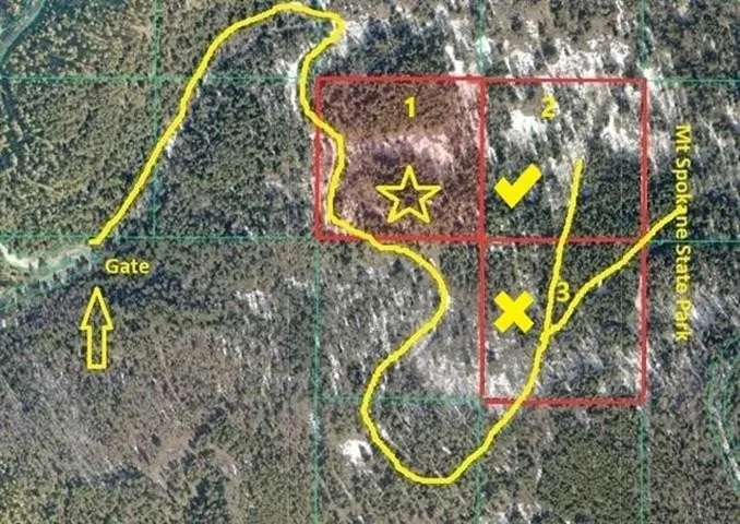 lot 2 of 3 Ten acre Parcel at the foothills of Mt Spokane beautiful Mt Kit Carson close to the border of Mt Spokane State Park This easy access remote location behind locked gates is host to abundant wildlife, vegetation, trees and views. Call for details.