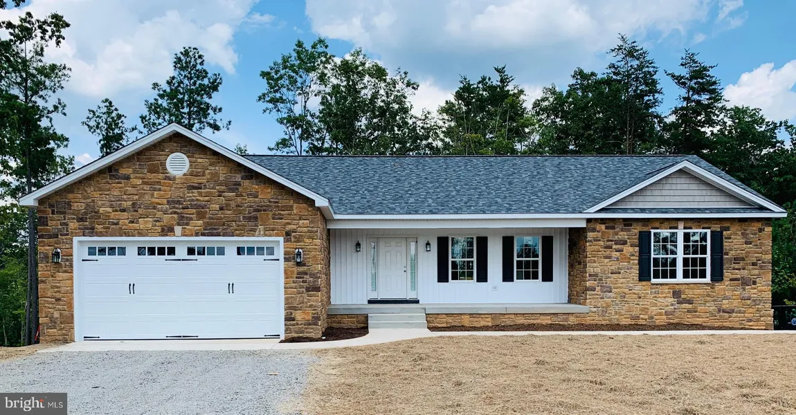 NEW CONSTRUCTION on over 3 private acres with pastoral and pond views. Borders large farm parcel. Fully loaded with upgrades and extensive stonework. 3 bedroom, 3 baths one level home. Offering you an open kitchen with granite counters, farmhouse sink, island wine rack and stainless appliance package. Living room with wood flooring and stone fireplace. Spacious master suite with walk in closet, bath with ceramic tile, custom shower and soaking tub. Walkout basement with exterior walkway, 9 foot ceilings, full bath, and a safe room. Deck off rear with gorgeous views. Two car garage and front porch. 4 bedroom septic. Not all photos are of this house. Some of other models