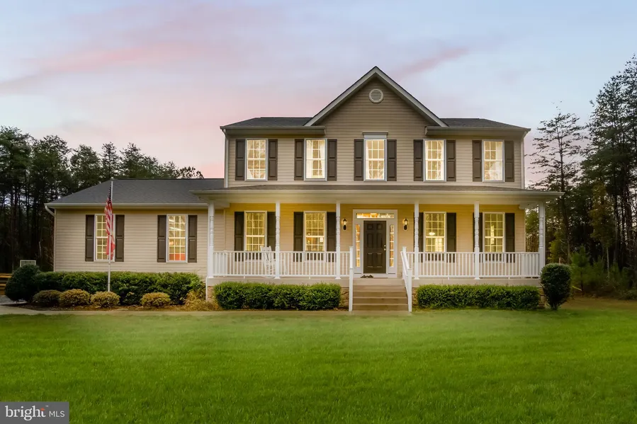 Beautiful 5 bedroom home located on a private 4 Acre lot! Three finished levels in turn-key condition for your enjoyment. Relax on the full front porch or sit out on the covered back deck to enjoy the peace and quiet of country living! The main level is finished with hardwood flooring and 9 foot ceilings. The open floor plan is complete with separate living and dining rooms as well as a family room with cozy fireplace. The kitchen has gleaming cabinets, granite counters, stainless appliances and a LARGE walk-in pantry. Upstairs you will find 4 bedrooms to include the relaxing master suite. The lower level is finished with a fifth bedroom, full bath and large recreation area. Nothing to do here but move-in! Storage is not a problem with the attached 2 car garage and LARGE 12 X 36 ft custom out building. Currently being used as a kennel, this building can be used as a work shop (...