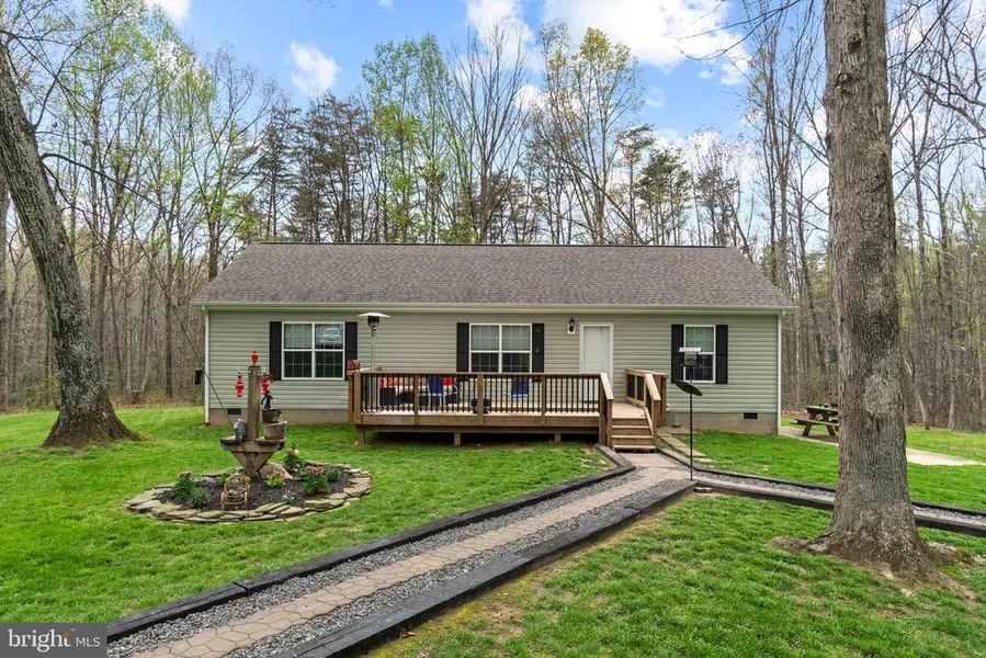 Almost 13 acres! Immaculate! Peaceful setting! NO HOA! No visible neighbors, live the country life within minutes to shopping! Live stream on southern side of the property with a walking path to it. PRIVACY!! Last home on the street surrounded by land that can't be developed! ATV trail about a mile long, Lots of upgrades. Whole house has been painted, all new flooring in every room except bedrooms, all new faucets in the kitchen and bathrooms, new sink in the kitchen. Extra-large Primary Closet. All ceilings have electrical boxes for ceiling fans. Crown molding in every room. The 12x24 front porch is only 3 years old! The home should have a 3 ton HVAC system but it was upgraded to a 3 1/2 ton unit. One car detached garage with concreate floor. Huge garden that has been used and cultivated for over 50 years, ready to plant! Greenhouse has concrete floor. Land was surveyed in 2018 and all four corners are prominently marked. 45 miles to DC or Richmond & 6 miles to Lake Anna State Park! With so much to offer at this price, schedule your showing today, it will not last long!
