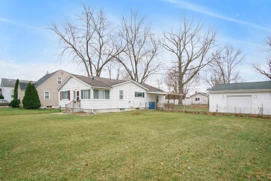 Welcome home! This beautiful home is located across from the river, close to park and Eberhart Golf Course. This 2 bed. 1 bath home offers a great size living room with fireplace for cold winter days to come. Completely renovated kitchen boasts with new cabinets, backsplash, appliances. Move in ready with lots of updates throughout including new light fixtures, trimming, carpet, fresh paint, new gutters, newer windows, water heater. Convenient off the kitchen laundry room, formal dining room. Basement offers family room with kitchenette, plenty of room for a storage. Garage has a double entry door and lots of space for extra storage, additional shed for all your belongings. Double lot is fenced in for your pets/kids to play. Great size patio to enjoy for a family time! Don't wait, make this home yours now! Home is updated but selling AS IS.