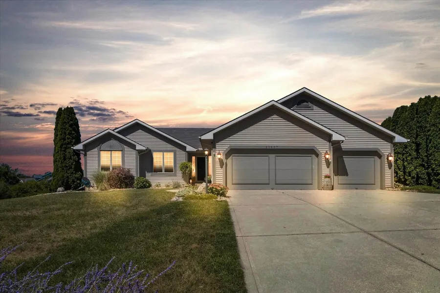 Remarkable Ranch home in Fox Run Subdivision. This home sits on almost 2 acres with pond. Image sitting on your deck in the evening watching the wildlife around the pond. Sellers have seen Blue Herons hunting fish. This ranch home has been meticulously maintained. Open kitchen to dining to living room with fireplace. The kitchen has an area for coffee bar or breakfast nook. Dining area has sliding doors that lead to the massive 16 x 48 deck. The living room has oak flooring that can be refinished. Vaulted ceilings. Main bedroom has been recently painted and new flooring, updated bath and has large closet. Two other bedrooms have had Bamboo flooring installed and fresh paint. The finished basement large open area for entertaining, work out or home office. There are sliding glass door to walk out to the concrete patio. Basement is plumbed for bath. 3 Car attached garage for plenty of stora...