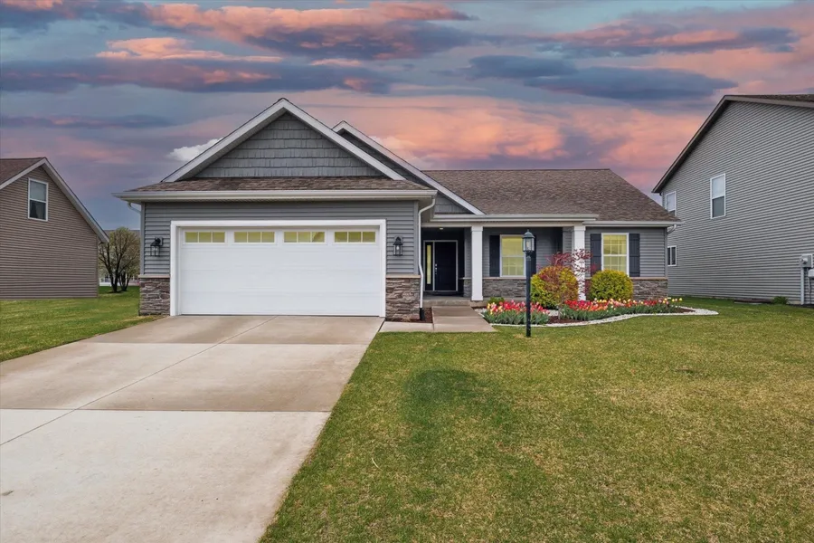 Start Showing Date: 4/28. Open House Sunday 4/30 from 2-4PM. Welcome home! This Energy Star Certified ranch style home in Newbury Pointe has all of the perks and efficiency of a recently built home, WITHOUT HAVING TO WAIT FOR THE BUILDING PROCESS! Located on a large premium lot in the Award Winning Penn School District. As you enter the home, you'll love the large living room with its vaulted ceilings and stone face gas fireplace. The elegant kitchen features beautiful granite countertops, stunning cabinetry with soft close drawers and a raised bar, creating the perfect area to entertain. This home offers the convenience of having the bedrooms, bathrooms and laundry on the main floor including the principal bedroom en suite with beautiful double sink vanity and tiled walk in shower. The large and open unfinished lower level provides an opportunity to potentially double your finished living area. Equipped with a large egress window and rough plumbed for a bathroom. the new owner can add an extra bedroom, Full Bath, Rec Room, Office, Home Gym, so many options!. The warmer months are here! Imagine hanging out on your patio, grilling and enjoying your beautiful backyard with several fruit trees. A new job is taking the current owners away from their dream home and their move is your gain. Schedule your private tour today!!
