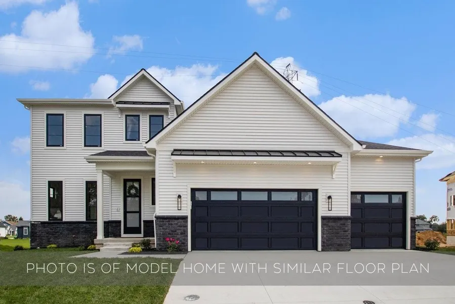 Meadows at NBV 15-UNDER CONSTRUCTION Modern Craftsman style home in popular Northbridge Valley built by Devine Homes by Miller. The Casey floorplan - an incredibly livable split bedroom plan that includes private spaces for everyone - with upgrades that include beamed ceilings, smart home technology package, 50" great room fireplace, and a 3-car garage. With two-stories of 9 ft ceilings (10' in great room), this open concept home has 3 bedrooms and 2.5 baths. Flex room on main floor is a great home office, playroom, studio, or den space. The kitchen includes appliance package, walk-in pantry, and slider to the 16'x16' deck. Open great room is ideal for gathering and has an electric fireplace and beamed ceilings. The main level primary suite has a huge walk-in closet and an en suite bath with dual sink vanity, electric fireplace, and tile shower. The upstairs features an incredible loft/flex space that would make an additional living room or rec room. Two bedrooms, large laundry room, and a full bath complete this high functioning living space. Yard will be sodded complete with irrigation system, entire garage will be drywalled with firetape finish. Located in a great neighborhood featuring city water and sewer within the Penn School System! Award-winning builder, Devine Homes by Miller, is known for smart floor plans with beautiful finishes. Basement can be finished for $699,999, per attached floorplan.