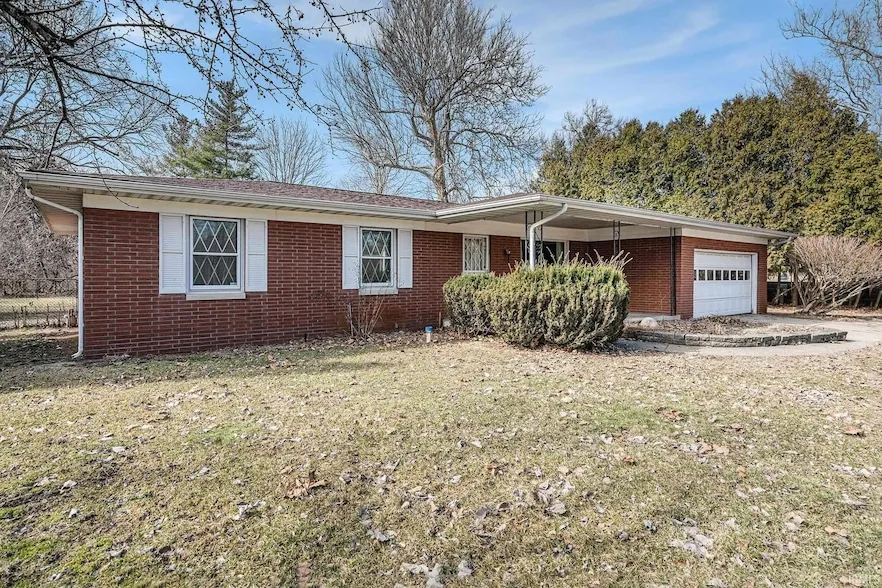 Welcome to this inviting 3-bedroom, 2-bathroom brick ranch nestled on a large private lot with picturesque views. Close to Notre Dame, St. Mary's, and downtown South Bend, this house has unmatched views of the St. Joseph River. Offering a spacious and functional layout, featuring a bright living room with a cozy brick fireplace, and large sliding doors that flood the space with natural light. Multiple patio doors throughout the home provide easy indoor-outdoor flow with seamless access to the generous yard. Perfect for entertaining or simply enjoying the peaceful surroundings. The open dining area connects to a classic kitchen with charming wood cabinetry and ample storage. Adding to the home's appeal is the finished basement, offering extra living space, wet bar, storage space, and laundry area. Lower level has potential for a home office or recreation area- endless possibilities to suit your needs! Situated in a quiet, desirable area, this home is ideal for those looking to add their own touches while enjoying the charm of a beautiful property. Don't miss this great opportunity to own a home with so much potential! Schedule your showing TODAY!