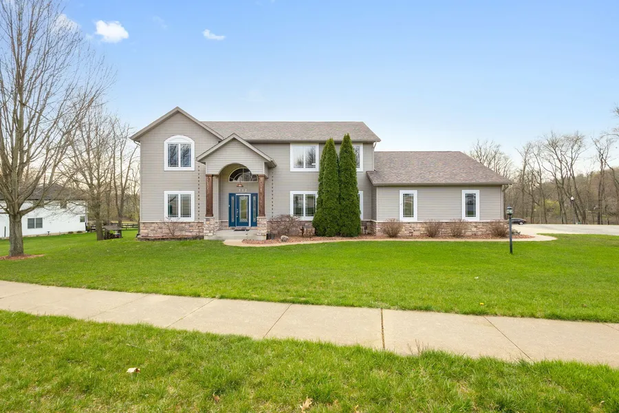 Now priced BELOW the March 2025 appraisal + just in time for pool season! BRAND NEW LVP flooring just installed on the main level!This 4-bed, 3.5-bath home in the New Prairie School District features a HEATED salt system pool with a BRAND NEW PUMP, outdoor SAUNA, FINISHED walk-out basement, and INSULATED 3-car garage on a 1.28-acre DOUBLE LOT with a peaceful STOCKED pond! Major updates include: Roof (2020), Furnace/AC (2019), Water Heater (2022), Fridge (2025), Washer/Dryer (2024), and NEW Pool Pump + Salt System (Spring/Summer2025) LVP Flooring on Main Level (June 2025)Motivated seller -- schedule your showing today!