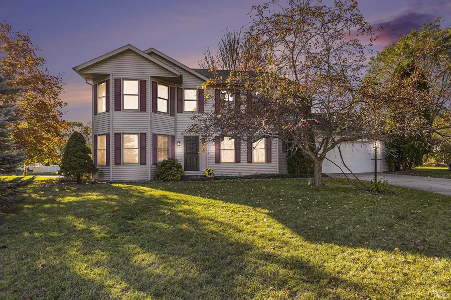 Welcome home to 51041 Grapevine Court! Tucked away on a quiet cul-de-sac corner lot in a friendly neighborhood. This beautifully updated 4-bedroom, 2.5-bath two-story offers 2,428 SF of comfortable living space and a fantastic location close to Notre Dame and convenient to the US-20 Bypass. Step inside through the new entry door to find all-new flooring throughout, including carpet, laminate and luxury vinyl plank, plus fresh interior paint for a clean, move-in-ready feel. The main floor features a spacious den/flex room—perfect for a home office or playroom—along with a formal dining room and bright, open living spaces ideal for entertaining. Upstairs, the fifth bedroom has been thoughtfully converted into a convenient second-floor laundry room. The partially finished basement provides additional living space or room to expand, while the two-car-attached garage offers great storage and everyday convenience. Enjoy peaceful evenings on the large, private deck. Harvest the bounties of the mature fruit trees and garden area. Don’t miss your chance to make this beautifully refreshed home yours!