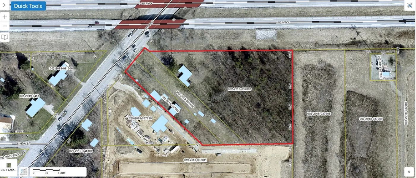 Great development opportunity on approximately 4.44 acres with 118 FT of frontage on SR 23 (approx. 16,000 cars daily, INDOT Traffic Counts). 3 parcels total with 3 separate addresses (16938, 16960, and 16972). Property also abuts the IN Toll Road with approx. 547 FT of visibility. A state of the art indoor storage facility is currently being developed adjacent to the property. Excellent proximity, only 1/2 mile from the University Park Mall, 2 miles (5 mins) from the University of Notre Dame, 3 miles (8 mins) from both the IN Toll Road Interchange on IN-933 heading West the Interchange on IN-331/Capital Ave heading East, and 4 miles (12 mins) to Downtown South Bend. Home on the property is currently being rented month to month. City water available. Zoned R: Residential. Taxes: $4,140.16