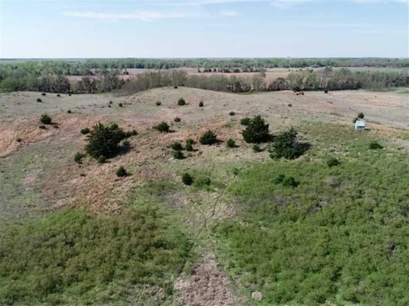 What a great opportunity to own a dynamite tract in Kansas! This farm has thick rolling hills covered in plum thickets, a shelter belt on the south, small grove of trees on the north, and scattered cedars. This tract is a great transition property for whitetail deer, turkey, pheasant and quail. To really understand why this farm is so good you need to study the aerial views. To the south is a irrigated food source, west is large chunks of pasture, and east is thick cover. All the way around it is big deer country with food sources close! The sellers have kept the trails mowed, corn in the feeder, and take great care of the property. Year after year it produces great bucks!