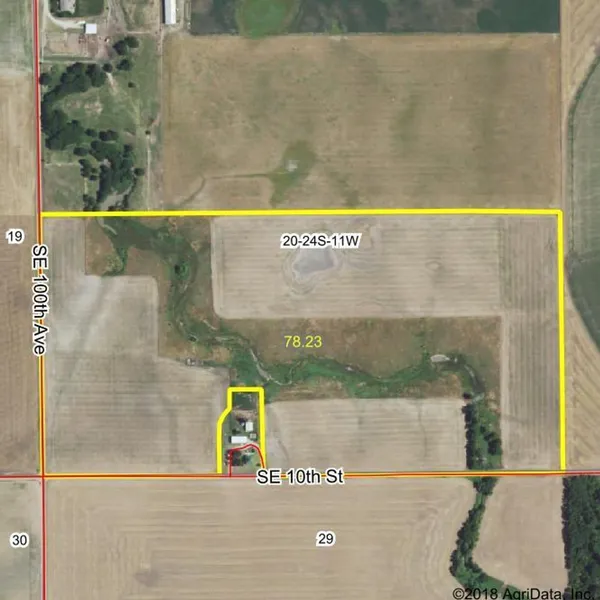 This farm consists of 55+/- acres of dryland tillable acres currently drilled to wheat. There are 3 separate tillable fields that surround the pasture land. 27.5+/- Acres, 18.5+/- Acres, and 8.77+/- acres are the tillable field sizes. Having multiple fields a farmer can plant and rotate different crops. Class II Soil types include a mix of Funmar Loam and Sandy Loam soil types.In the middle of the farm ground there are 22+/- acres of pasture with Dooleyville Creek winding through the middle.