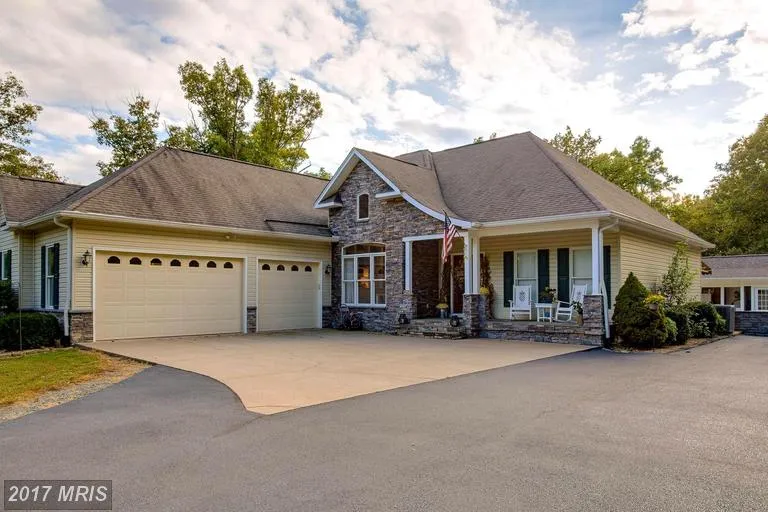 Turn-key rambler on private 7.92 acre setting. Brazilian cherry hardwood flooring & 12 ft ceilings on main level. Light & bright w/ windows throughout. Granite, SS appliances & custom backsplash in kitchen. Stacked stone fireplace in FR. Rear sunroom. Fin lower level w/walkout. Outdoor lovers paradise featuring pool, pool house, grilling area, putting green & trails! Must see to appreciate!