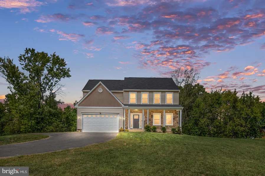 Welcome to your dream home! This stunning 5-bedroom, 3.5-bath residence is just 2 years old and boasts 3,480 total finished square feet on a 1-acre lot with public water/sewer! The upgraded stone front and expansive front porch offer the perfect spot to enjoy a morning coffee or a place to unwind in the evening. Upon entry, you can’t help to be drawn to the formal dining room to your right, featuring an elegant chair rail and crown molding. Through to the gourmet kitchen, you’ll find beautiful 42-inch white cabinets, granite countertops, sleek stainless-steel appliances, a double wall oven, a large island with stylish pendant lights, and a large pantry. The open-concept design flows seamlessly from the kitchen to the dining area, where a sliding glass door opens onto the deck, and into the spacious family room. The family room is highlighted by a propane-powered gas fireplace, flanked by windows that frame picturesque views of the wooded backyard. Luxury Vinyl Plank flooring runs throughout the first floor, adding both style and durability. Upstairs, the primary suite is a true retreat, complete with a large walk-in closet and an en-suite bathroom featuring a soaking tub and dual sink vanity. The second level also includes three additional bedrooms, two of which offer walk-in closets, along with another full bath. The finished basement provides endless possibilities, whether you envision a rec room, second family room, or home theater. It also includes the fifth bedroom and third full bath, offering ideal accommodations for guests, multigenerational living, or even potential rental income. This home is a haven for boat enthusiasts, located less than 2 miles from Willow Landing Marina, Hope Springs Marina, and Aquia Boat Storage & Launching, where you can have easy access to Aquia Creek and on to the Potomac River if you so desire. Conveniently situated near I-95, commuter lots, VRE, shopping, dining, Stafford Hospital, and just 15 miles from Quantico, this home offers the perfect blend of tranquility and convenience.