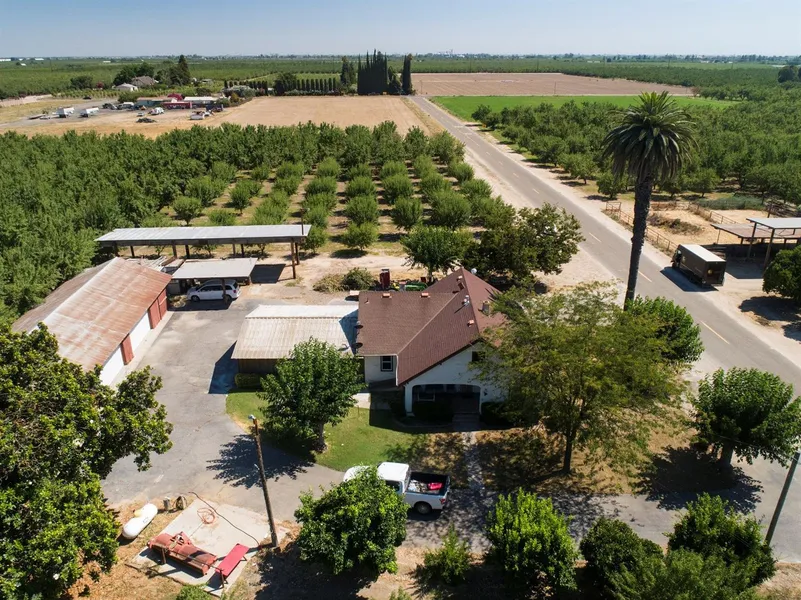 Country life! 9.75 acre ranchette with almond orchard! Lots to offer, including a 3 bedroom 1 bathroom home with remodeled kitchen, remodeled bathroom, dual pane windows, & newer central heat/air. A large enclosed patio, 80 x 28 shop, & 3 covered structures. And plenty of fruit trees on this charming property.