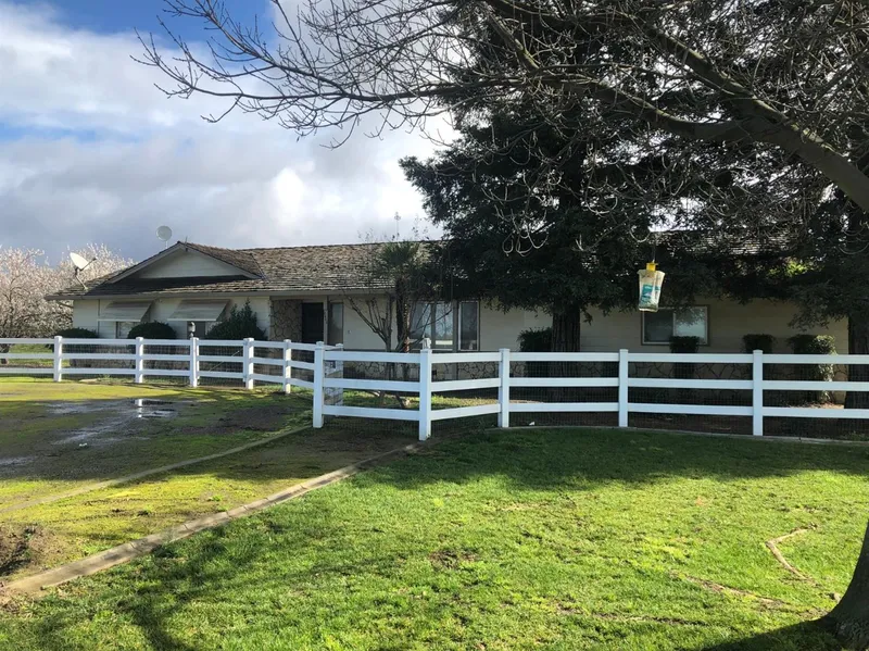 Great ranch property close to shopping, this property features approx 18.2 ac almonds; 50% nonpareil, 50% carmel with TID irrigation and ag well installed in 2014. The home is very spacious with approx 1796 Sf and 3 bed, 2 bath, separate family and living rooms. Large kitchen with plenty of cabinet space that overlooks the family room with cozy fireplace. Oversized 2 car garage and fenced backyard complete this home. The 25'x25' drive through shop has 2 large roll up doors, electrical and tons of space for your equipment or toys.