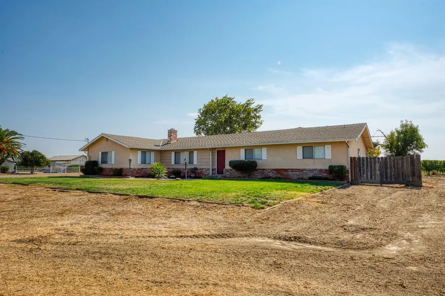 Country living at its finest! This ranchette is located close to town but far enough to enjoy peace and quiet. The adorable home has 4 bedrooms with a possible 5th bedroom and 2 and a half baths. Separate living and family rooms. Another room off the side of the kitchen can be used as a bedroom, gym, or crafting room! The backyard is your own private escape with a huge built in pool and is fenced for extra privacy. This property also features apricot trees and plenty of storage space for trailers, RV, or boats. Large open area is a clean slate with many possibilities. This is the ranchette you have been waiting for!