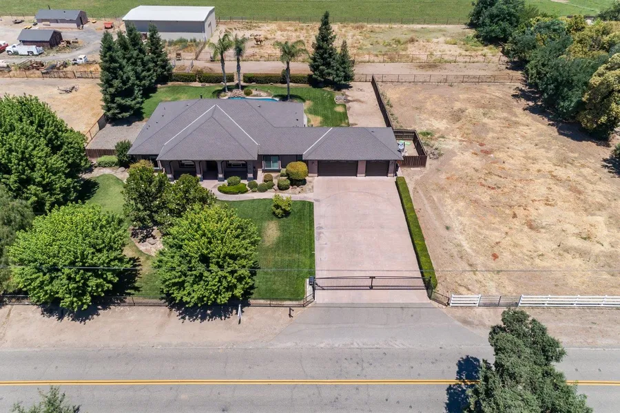 BEAUTIFUL custom home in gated 1 acre estate. Open floor plan w/ panoramic views from family room and kitchen. Built in bar w/wine refrigerator. Gourmet kitchen w/ large granite island, gas cooktop, and built in microwave. Large master suite and bathroom w/ walk-in closet. Resort style backyard w/ large covered patio and sparking pool and soothing waterfall. 3 car drive thru garage. Plenty of room to park your RV/boat with room to spare. Country living within minutes of shopping and schools!