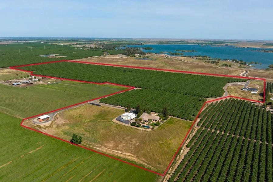 Estate Living on 76.93 Acres with 2 CUSTOM Homes!! Lots of Style, Custom Details, Solar Powered, & Tons of Value in Construction. Approx. 65 acres of Almonds, 5 Acres of Irrigated Pasture, Fenced, Gated, & Views of the Valley. Main House on a Hilltop w/ 4037sf, 4 Bedrooms, 3.5 Baths, Casita/Pool House/Bar, Pool, 3 Car Garage. Gorgeous Backyard, Entertainer's Delight w/ Outdoor Kitchen, BBQ, Fire Pit, Pergola, Patio, w/ POOL at the Edge of Hilltop. Metal Shop 40x40 Insulated, 2 Roll Up Doors, & RV Carport. Furthermore, the 2nd Home is a Farmhouse w/ Charm of the Modern-Rustic, Built Last Year in 2021. Approx. 1776sf w/ 3 Bedrooms and 2 Full Baths, Solar Powered. Detached 2 Car Oversized Garage. More Style, More Charm, & More Details Throughout. Almond Trees are 12 Years Old!! Nonpariel-50% Carmel-25%, Aldrich-25%. This Ranch has OID District Water to irrigate the Trees & Pasture. The Property has A 50 hp Deep Well & 25hp Booster Pump to Irrigate in 2 Sets. A Must See!